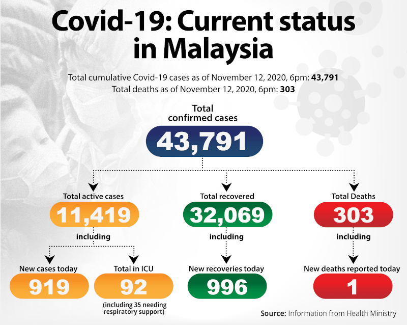 A total of 996 Covid-19 recoveries were reported in the past 24 hours in the country, which is higher than the 919 new cases recorded, said Health director-general Tan Sri Dr Noor Hisham Abdullah.