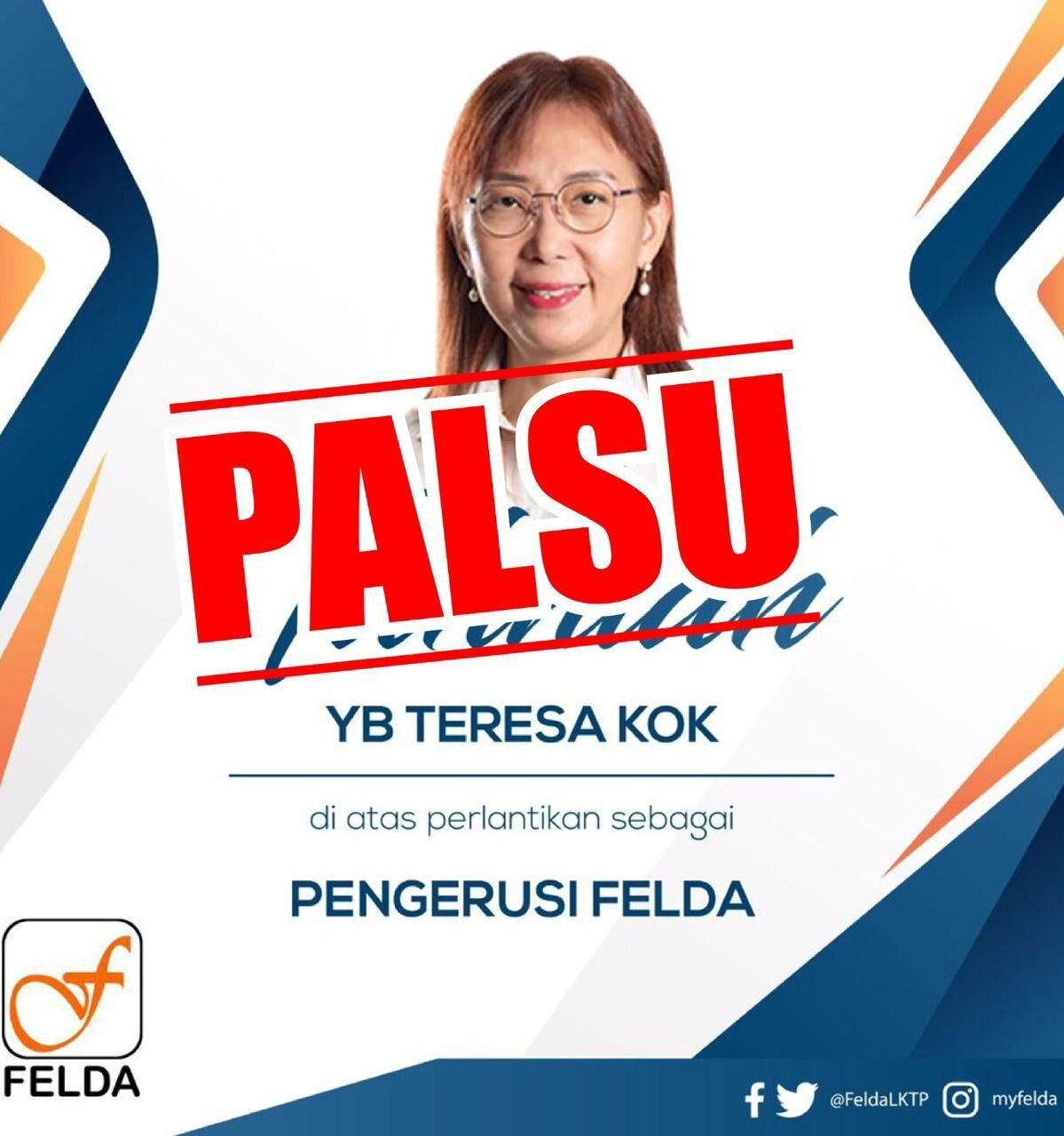 A purported congratulatory poster was then circulated online, including on the PAS assemblyperson’s account, that congratulated Kok for her “appointment” as Felda chairperson.
