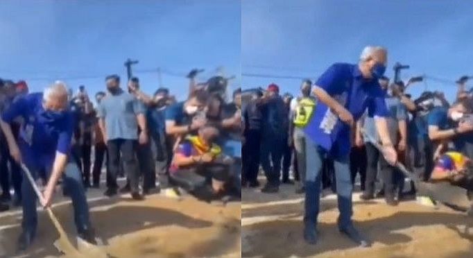 Twitter user @sofeahjoned initially shared the video, saying “the prime minister was having fun with the shovel. Only in Malaysia”.