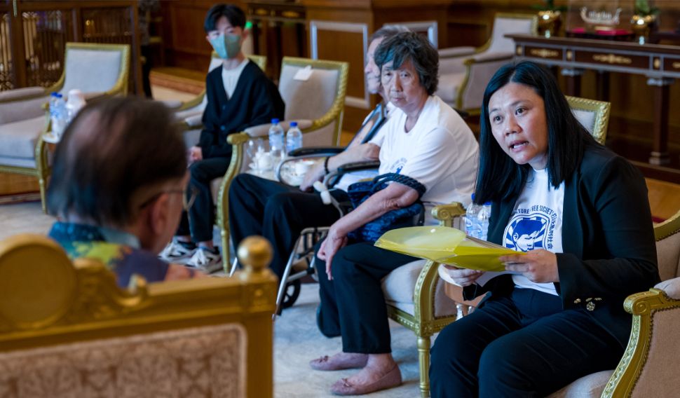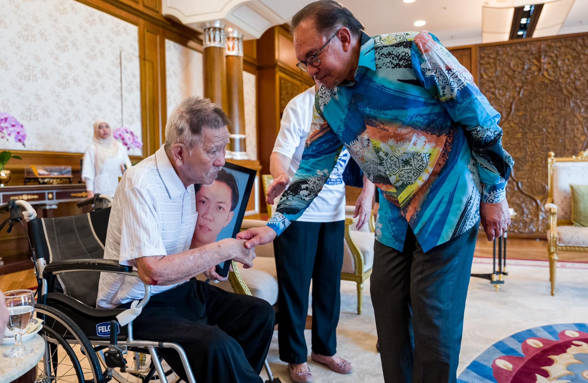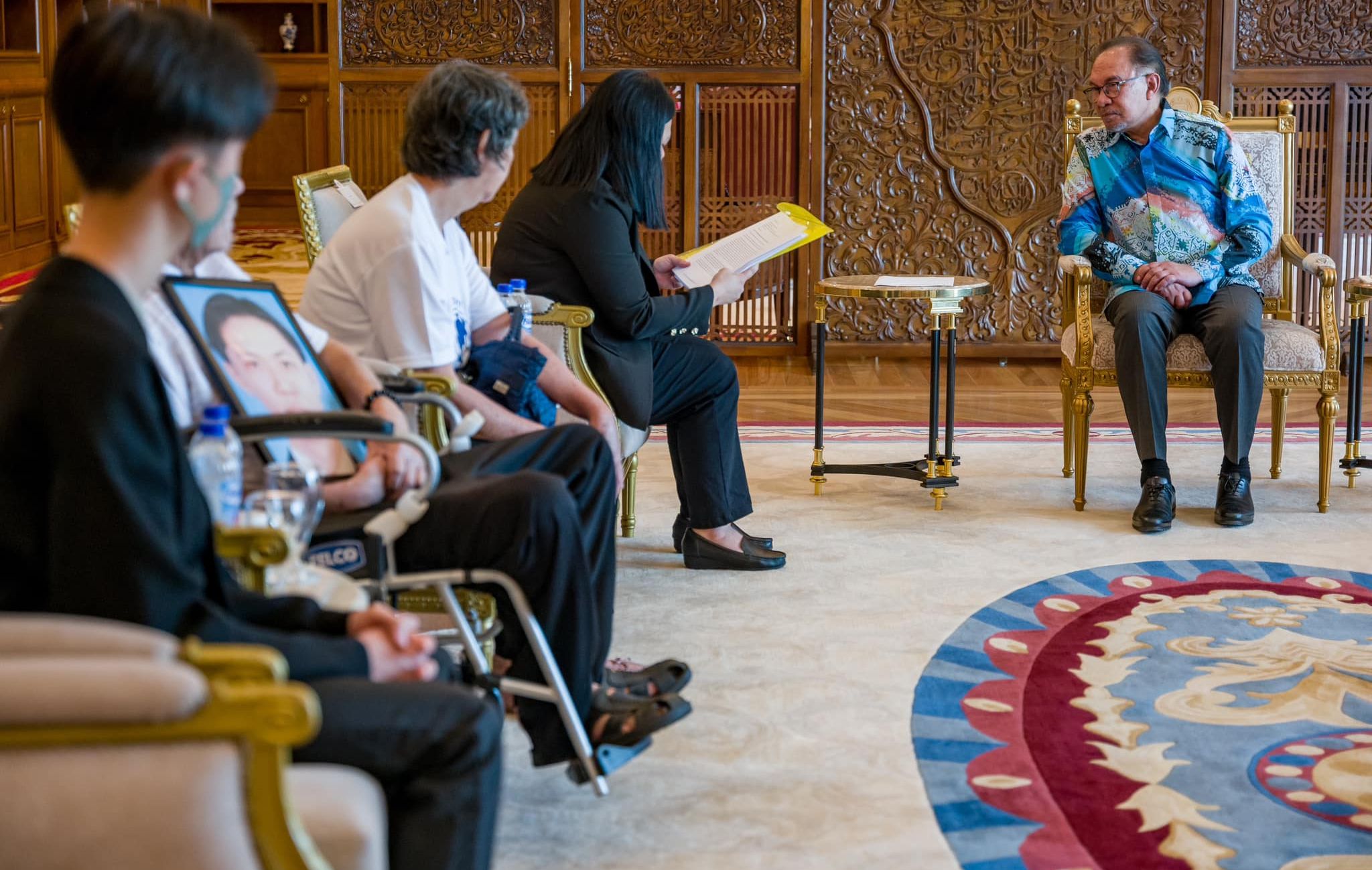 According to Anwar’s Facebook post, those present at the meeting were Beng Hock’s father Leong Hwee, mother Teng Shuw Hoi, sister Lee Lan, and son Er Jia.