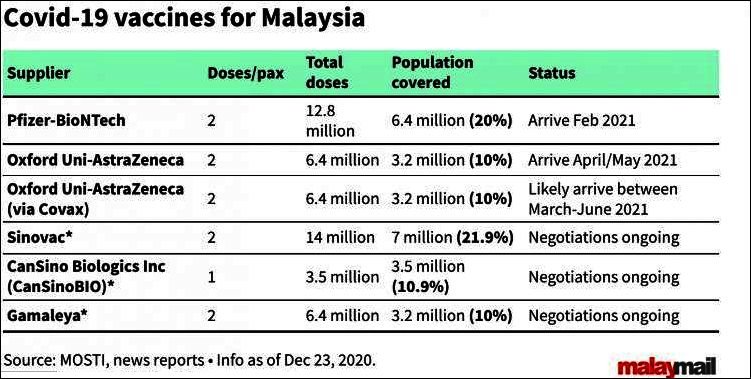 This leaves one to conclude that the other less than half of the procurement of 23.9 million doses from two Chinese manufactured and one Russian (Gamileya/Sputnik) source absorbed the rest of the considerably greater cost of RM1.324 billion. That would amount to an average cost of RM55 (€11/$13.7) for each dose for the three brands.