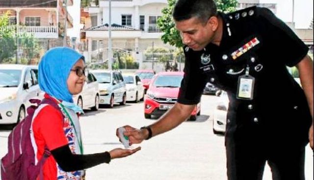 Yesterday, when school re-opened for the Year Three student, she was in awe when more than a dozen police personnel led by district police chief ACP Nik Ezanee Mohd Faisal turned up at her house for moral support and to take her to school.
